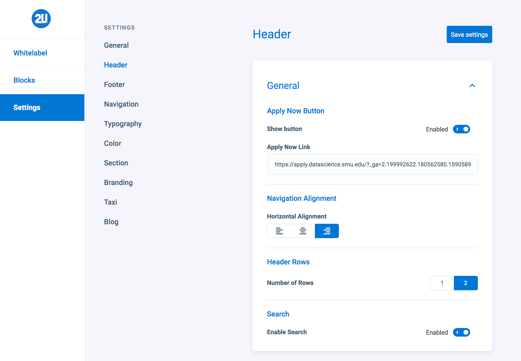 In 2020, Big Bite worked alongside the team at 2U to help develop a new WordPress theme, suite of custom Gutenberg blocks and Global Settings for site-by-site customisation. This allowed 2U to migrate all of their existing program sites, over to the WordPress platform, keeping inline with their current web creation systems and rules.