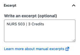 - Firstly prepare all the pages/posts for by adding the text into the excerpt and separating the left content from the right content with the | character. (See example below)