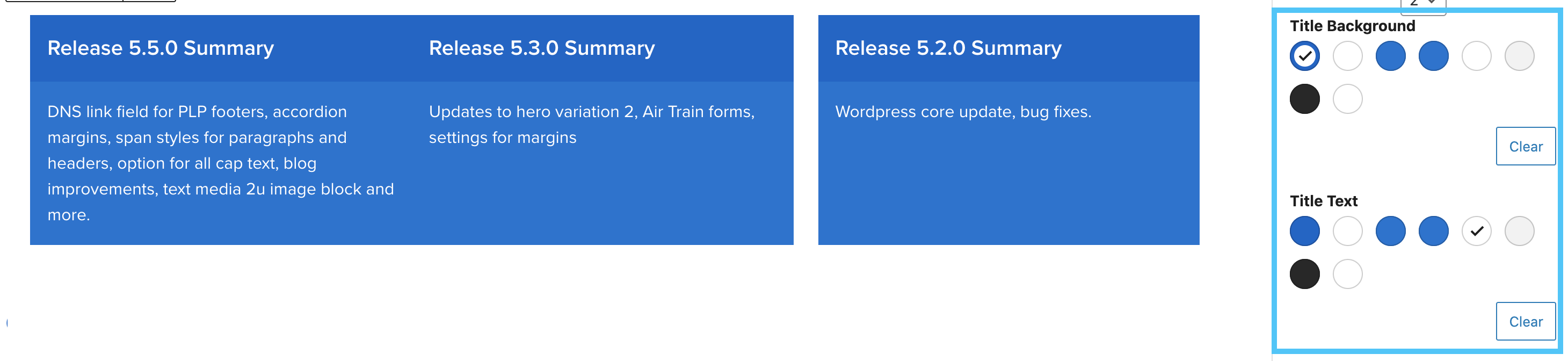 The dynamic card block also has the ability to customize the title content and image. To add these settings to the options panel, ensure the below toddles are highlighted.