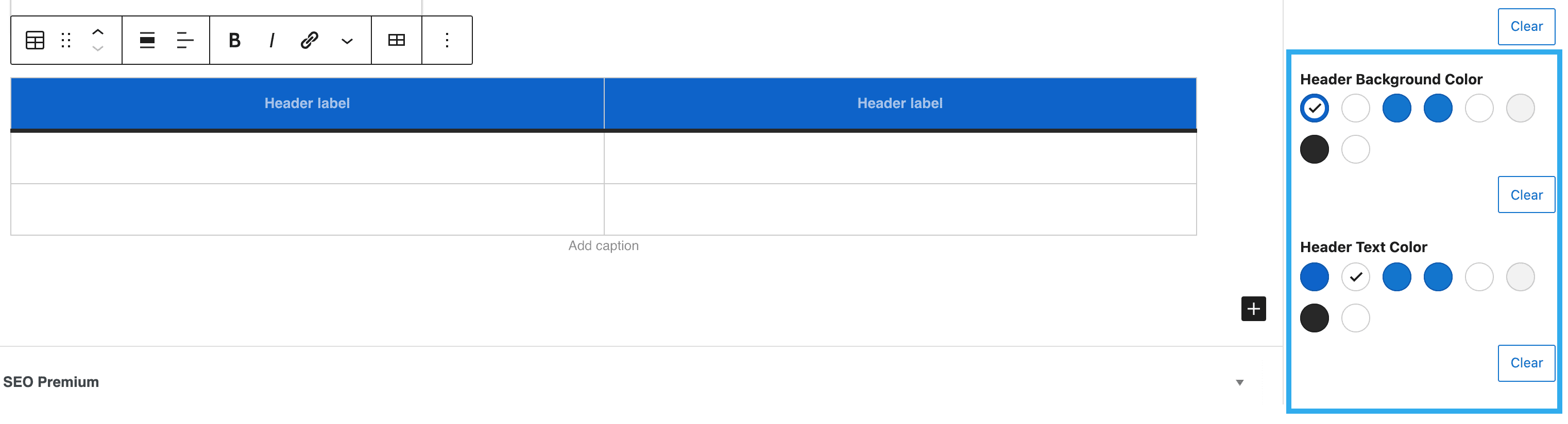 This can be toggled on/off at any time. When toggled on, a new row will be inserted at the top of your table, with a header underline automatically applied.