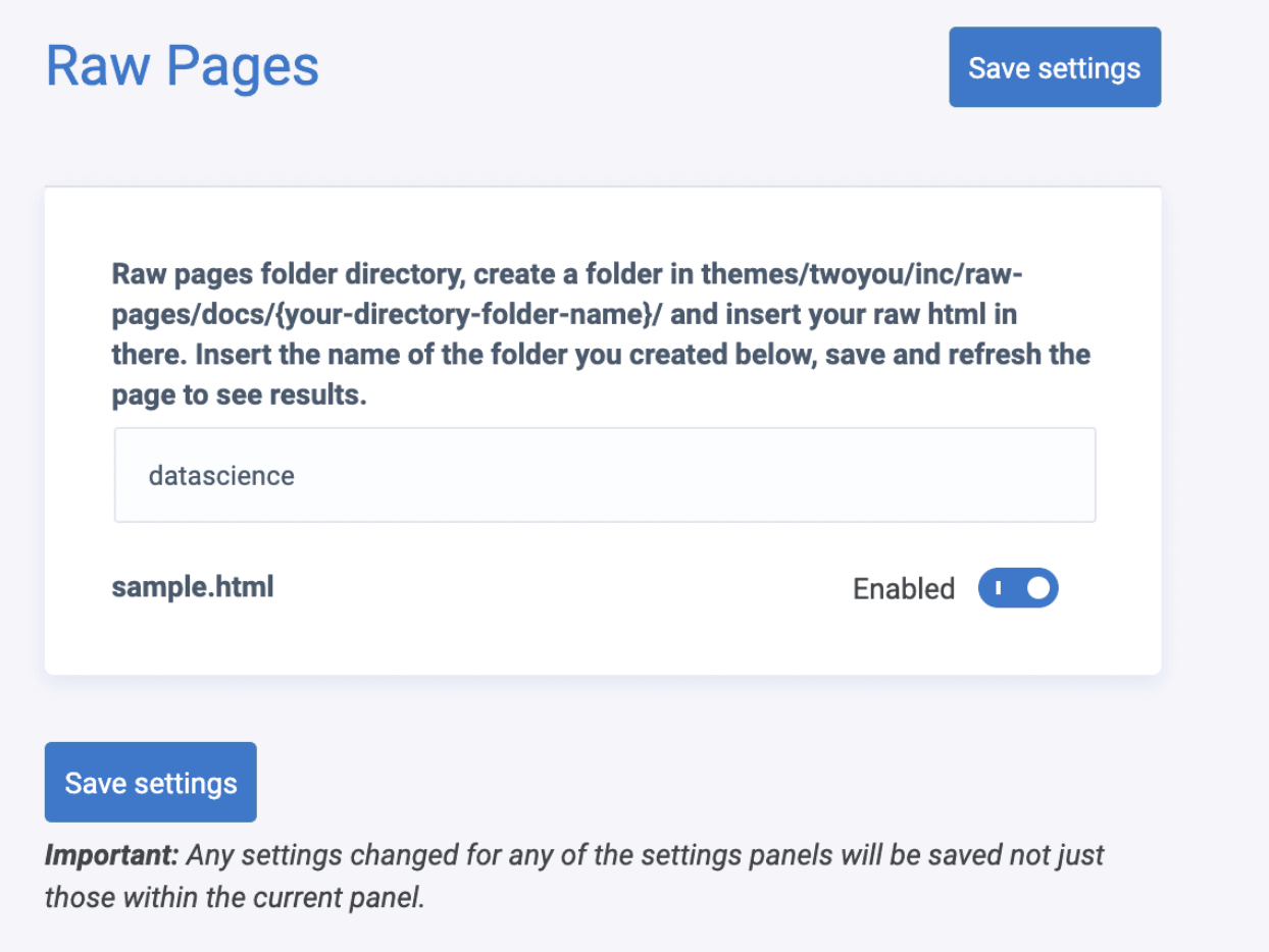 - When the file is successfully merged and built (roughly takes about 10 mins to publish) head to global settings -> raw pages