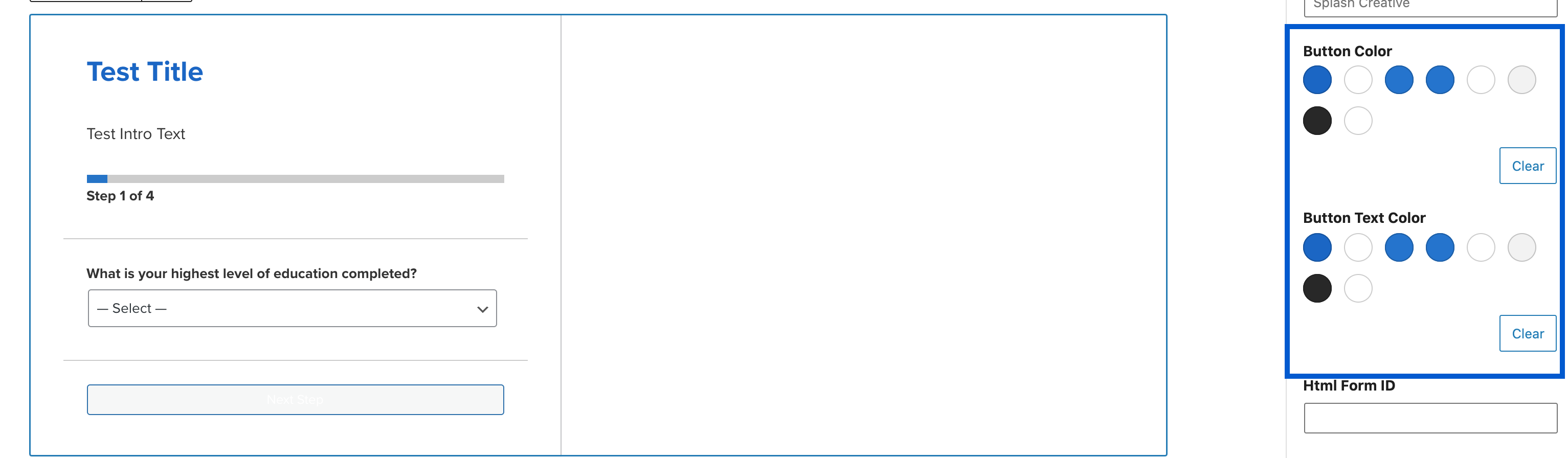 You can still style the button in any way you’d like, using the integrated button settings and click the toggle for Has Lead Form. The main styles that should be used, inline with Harmony guides are: