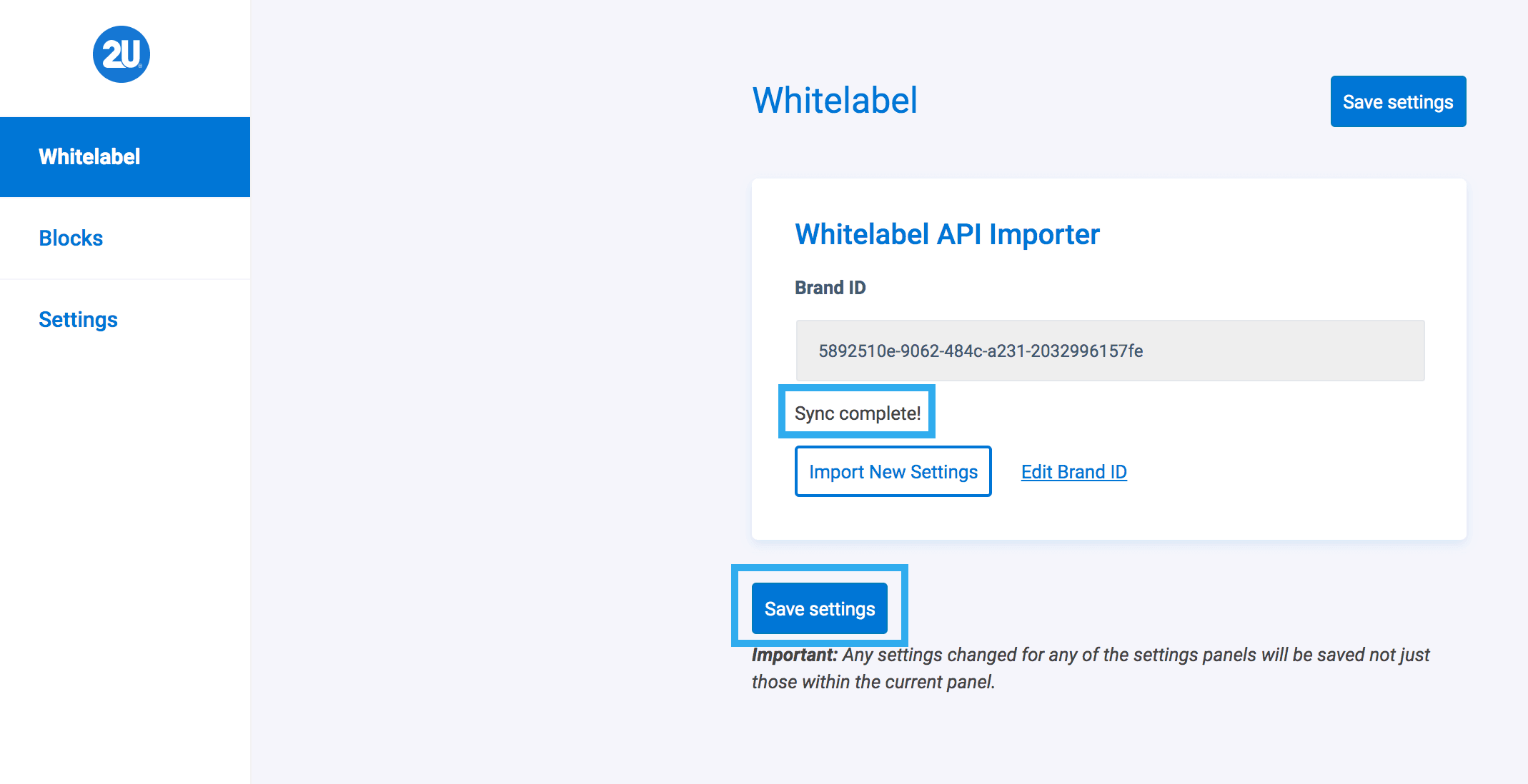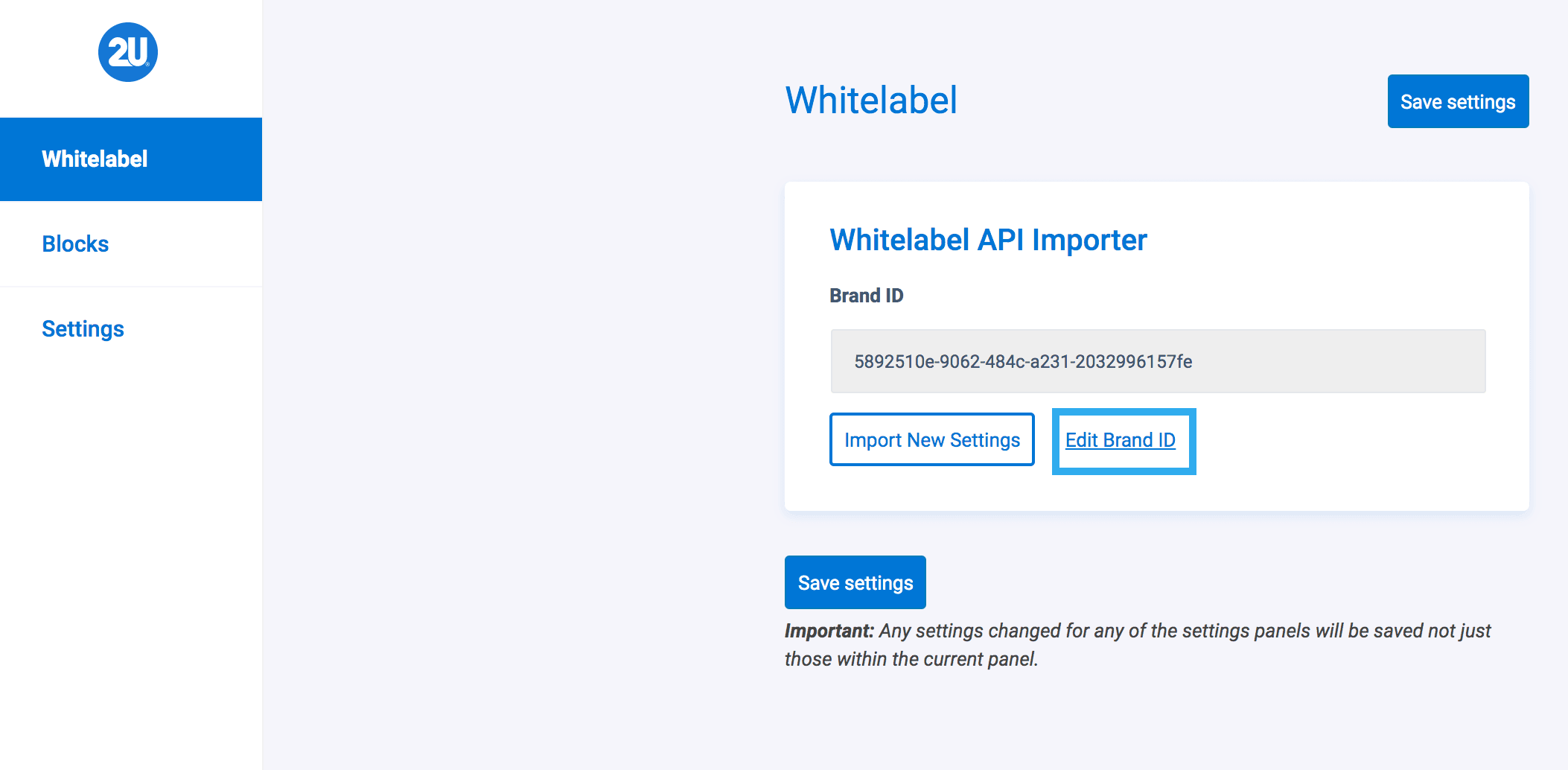 If you want to import completely new settings, from a different Brand ID; clicking Edit Brand ID will allow you to insert a new ID to pull the settings from.