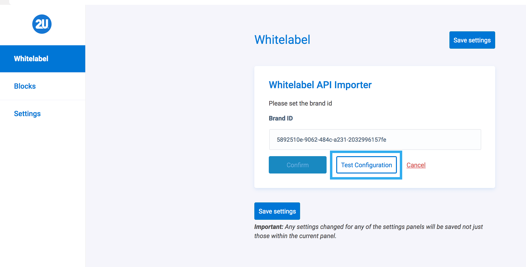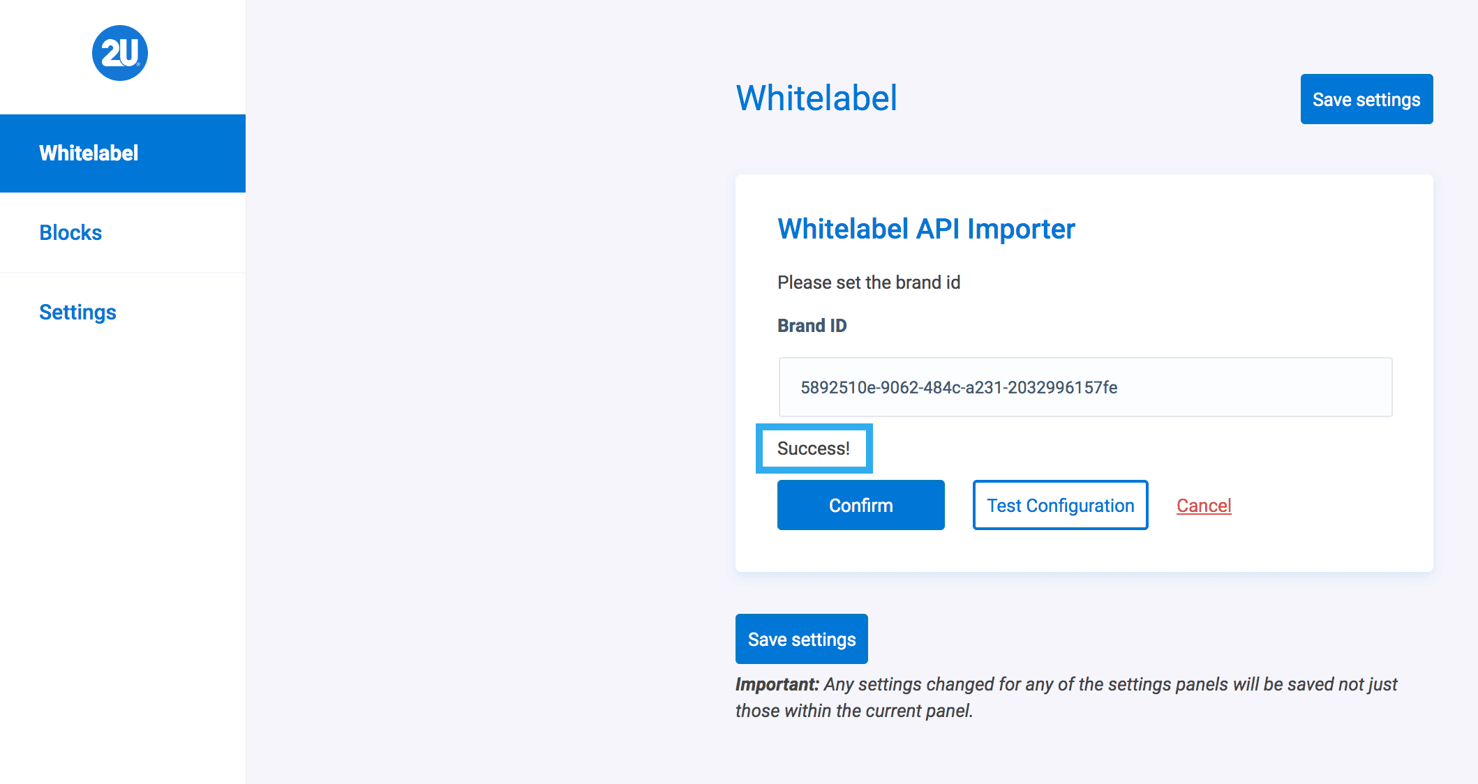 After you insert your updated Brand ID, click the Test Configuration button to ensure that the Brand ID is recognised and syncs correctly.