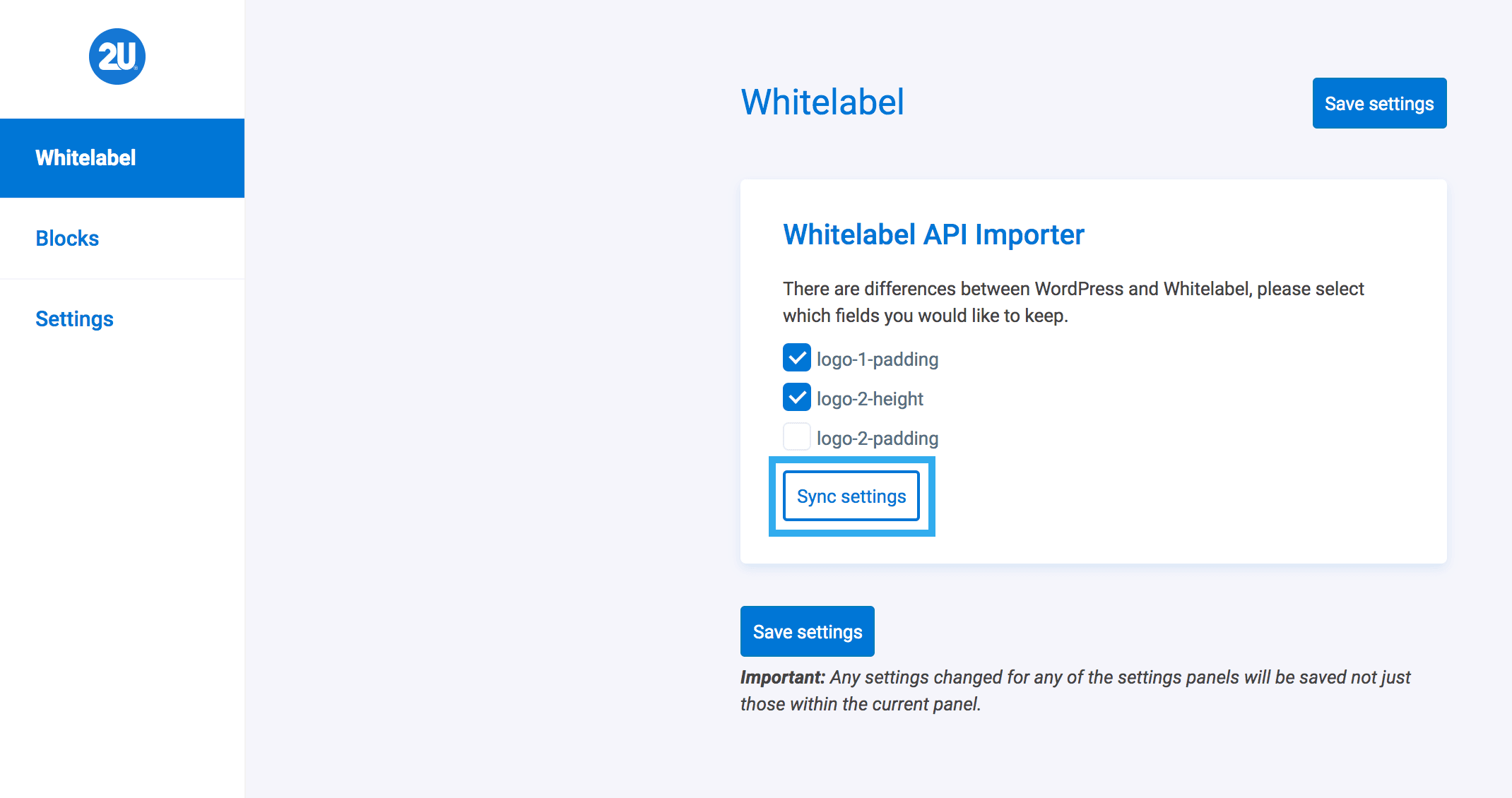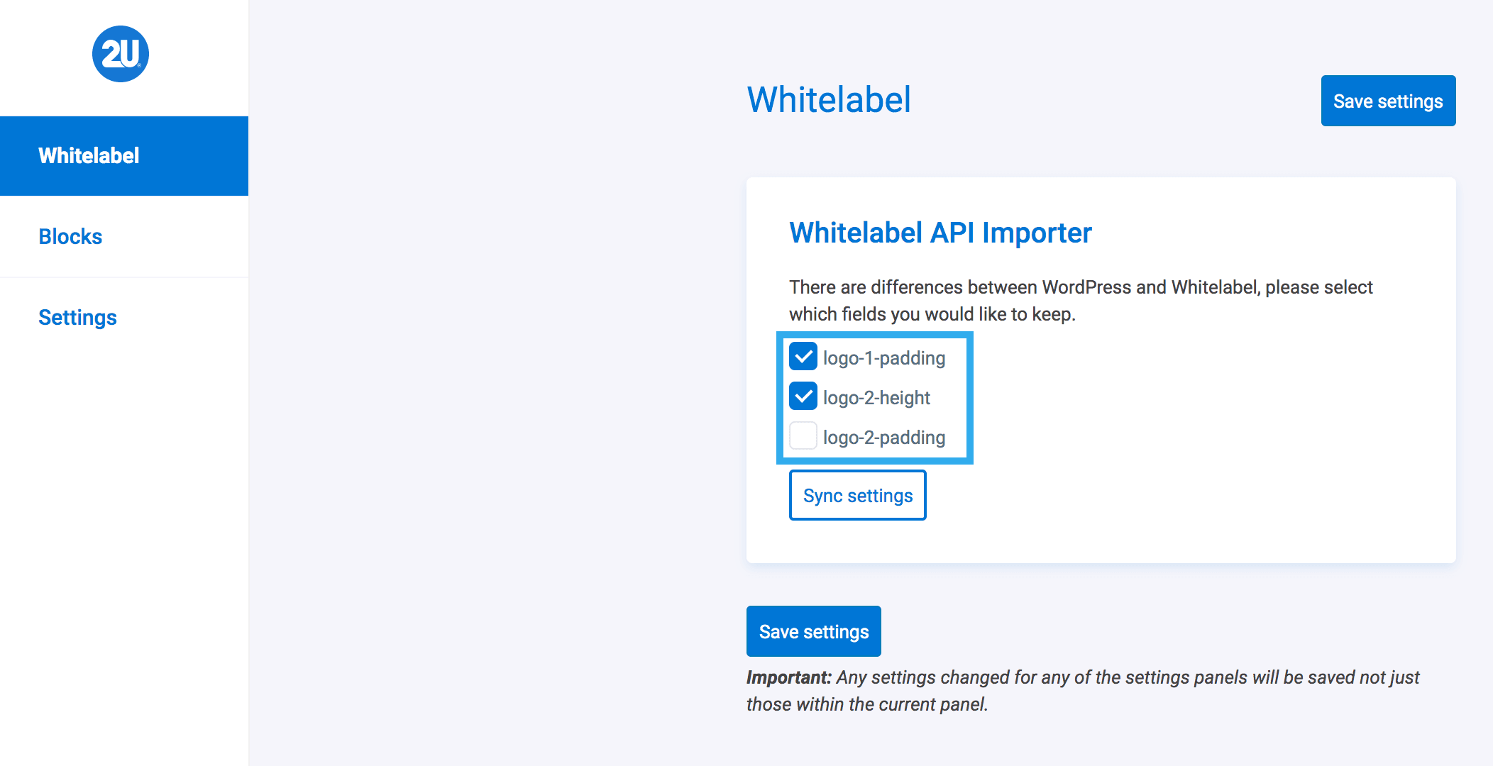 Note: if you do not click any of the fields, the Whitelabel settings will replace any settings you have set within WordPress. Alternatively, if you select all of the fields given, this means that your WordPress settings will override any new settings (for those fields) from Whitelabel.
