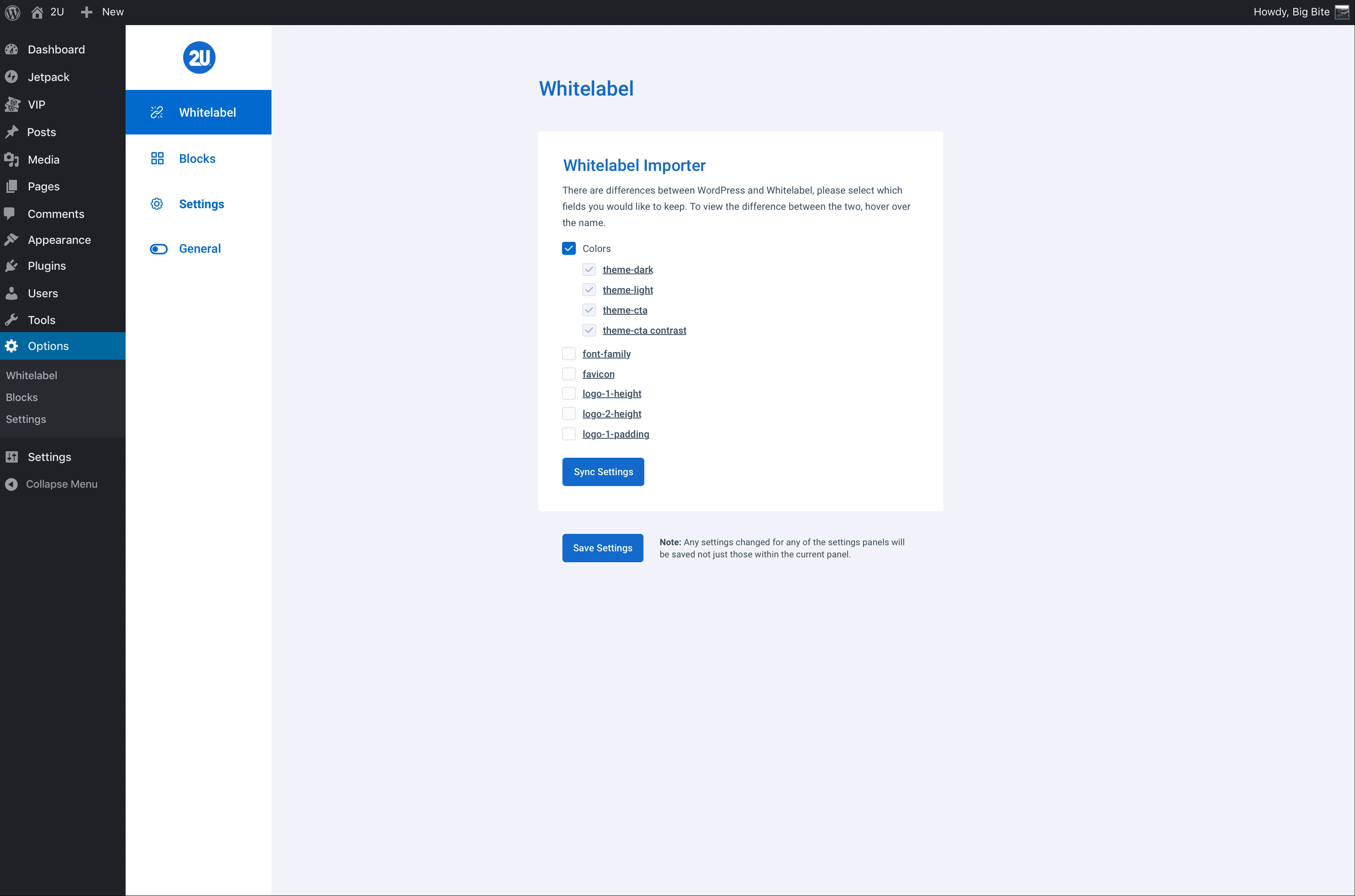 If you have overridden settings within the WordPress Global Settings area and want to import new settings from Whitelabel, you will need to confirm which settings from WordPress that you would like to remain.