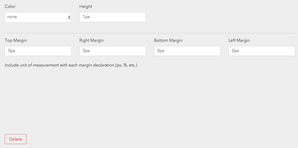 - Color: Select the color of the horizontal rule. Your color options are pulled from Whitelabel.