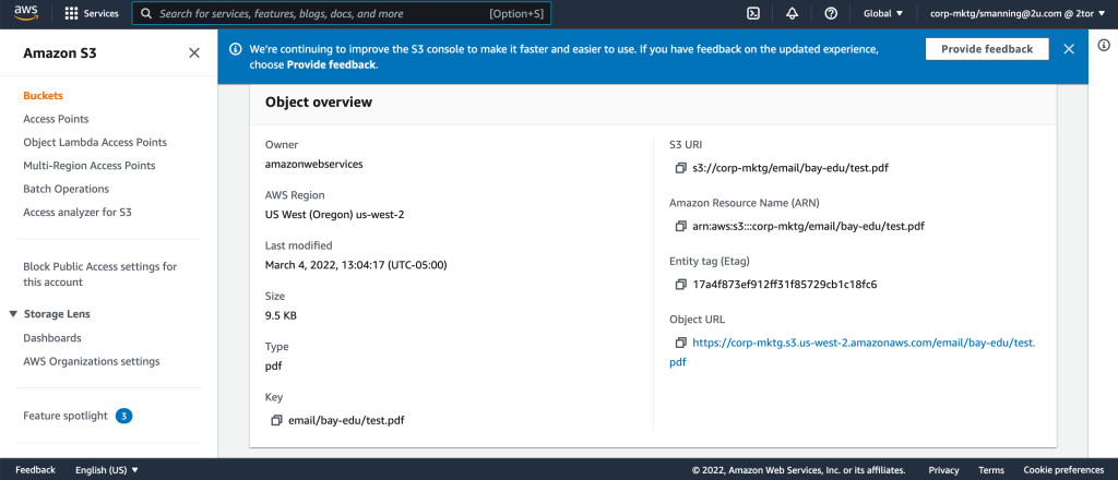 This will take you to another page, where you can now copy the “Object URL” of your file and send it to the appropriate stakeholder.
